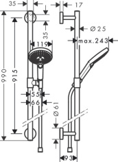 Душевой гарнитур hansgrohe Raindance Select S 150 3jet со штангой 90 см 26626000, хром
