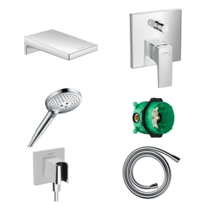 6 предметовГотовый набор для ванны скрытого монтажа hansgrohe Metropol с ручным душем Raindance HG-PR139, хром