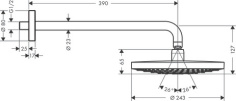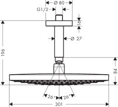 Верхний душ hansgrohe Raindance Select S 240 2jet с настенным кронштейном 26466000, хром