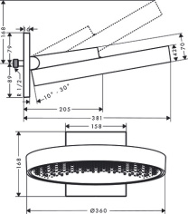 - шарнирное соединение: регулируемый угол верхнего душа (2 x 5°)