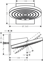 Круглый верхний душ Crome 280 1jet для настенного или потолочного монтажа является олицетворением удовольствия под душем в формате XXL. Благодаря диаметру 280 мм он распределяет воду по всей поверхности тела. Его лаконичный, благородный дизайн, гармоничная круглая форма и высококачественные металлические поверхности заметно повышают ценность интерьера ванной комнаты. Независимо от способа крепления – на стене или на потолке – с помощью шарнирного соединения верхний душ можно наклонить в любом направлении в соответствии с вашими индивидуальными пожеланиями.