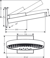 Верхний душ hansgrohe Rainfinity 360 1jet с настенным креплением 26230340/U, шлифованный черный хром, уцененный товар