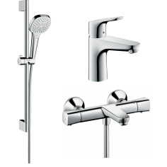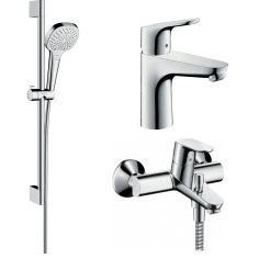 Готовый набор для ванны hansgrohe Focus с ручным душем Croma и смесителем для раковины HG-PR83, хром