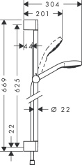 Душевой гарнитур hansgrohe Croma Select S 110 1jet со штангой 65 см 26564400, белый/хром