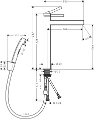 Смеситель для раковины hansgrohe Finoris 110 со сливным гарнитуром и гигиеническим душем 76210000, хром