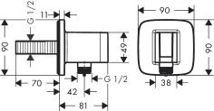 Шланговое подключение hansgrohe FixFit Square с клапаном обратного тока 26455000, хром