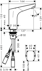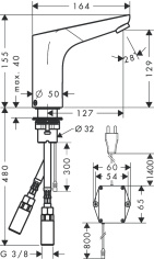 Смеситель для раковины hansgrohe Focus 130 электронный, с регулировкой температуры, питание от сети 230V 31173000, хром