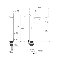 Смеситель для раковины Aqueduto LINHA M-size LIN0245, оружейная сталь