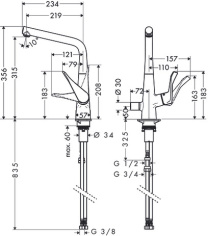 Смеситель для кухонной мойки hansgrohe Metris M71 320 14822000, хром