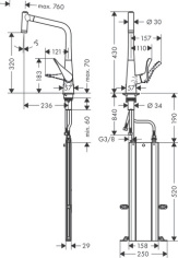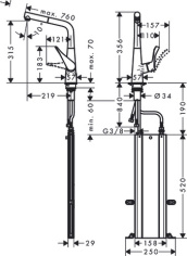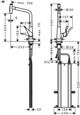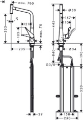 Смеситель для кухонной мойки hansgrohe Metris M71 320, с вытяжным изливом 14821800, под сталь