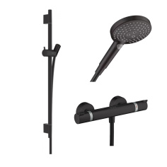 Готовый набор для душа hansgrohe Raindance с термостатом Ecostat HG-PR113, матовый черный