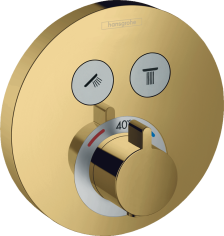 Внешняя часть термостата для душа hansgrohe ShowerSelect S скрытого монтажа на 2 потребителя 15743990, полированное золото