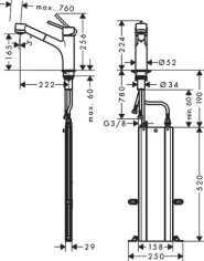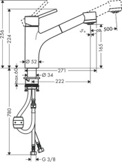 Смеситель для кухонной мойки hansgrohe Talis M52 170, с вытяжным душем 2jet 32841000, хром
