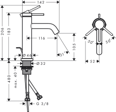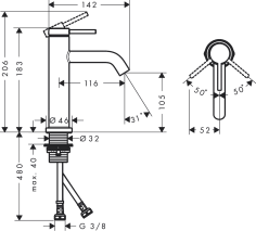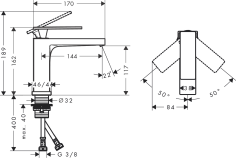 Смеситель для раковины hansgrohe Tecturis S 240 Fine, CoolStart, EcoSmart+, cо сливным гарнитуром Push-Open, 73370000, хром