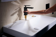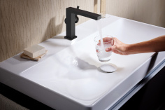 Смеситель для раковины hansgrohe Tecturis S 240 Fine, CoolStart, EcoSmart+, cо сливным гарнитуром Push-Open, 73370670, матовый черный