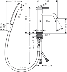 Смеситель для раковины hansgrohe Tecturis E 110 с гигиеническим душем и душевым шлангом, 73210000, хром