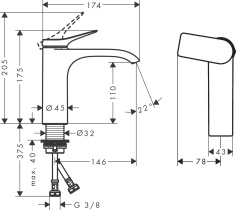 Кран для холодной воды hansgrohe Vivenis 80, без сливного гарнитура 75013670, матовый черный