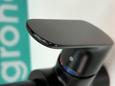 - Потертости на изливе, скол на рычаге смесителя.