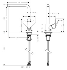 - состоит из: однорычажный кухонный смеситель, корпус для шланга