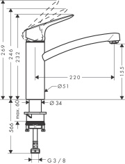 Смеситель для кухонной мойки hansgrohe Focus M41 160, Eco 31826000, хром