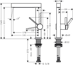 - Высота излива:
