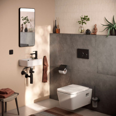 - Матовый черный цвет — трендовый оттенок, придающий смесителю выразительность и благородство, гармонично сочетающийся с разнообразными интерьерными решениями.