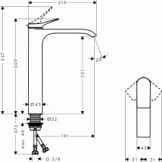 Смеситель для раковины hansgrohe Vivenis 110 CoolStart, с металлическим сливным гарнитуром 75023000, хром
