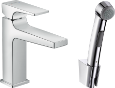 Смеситель для раковины hansgrohe Focus 100 со сливным гарнитуром и гигиеническим душем 31927000, хром