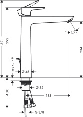 Смеситель для раковины hansgrohe Talis E 150, на 3 отверстия, со сливным гарнитуром 71733000, хром
