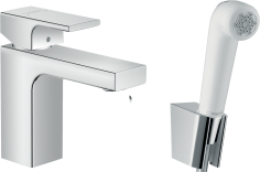 Смеситель для раковины hansgrohe Vernis Blend 100 без сливного гарнитура, с гигиеническим душем 71215000, хром