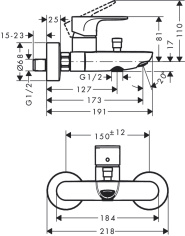 - · расход воды изливом на ванны при 3 барах: 18,7 л/мин