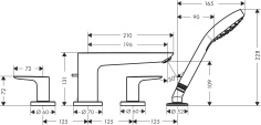 Внешняя часть смесителя для ванны hansgrohe Logis на край ванны, на 4 отверстия, с душевым гарнитуром 71314000, хром