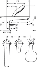 Внешняя часть смесителя для ванны hansgrohe Logis на край ванны, на 3 отверстия, с душевым гарнитуром 71310000, хром